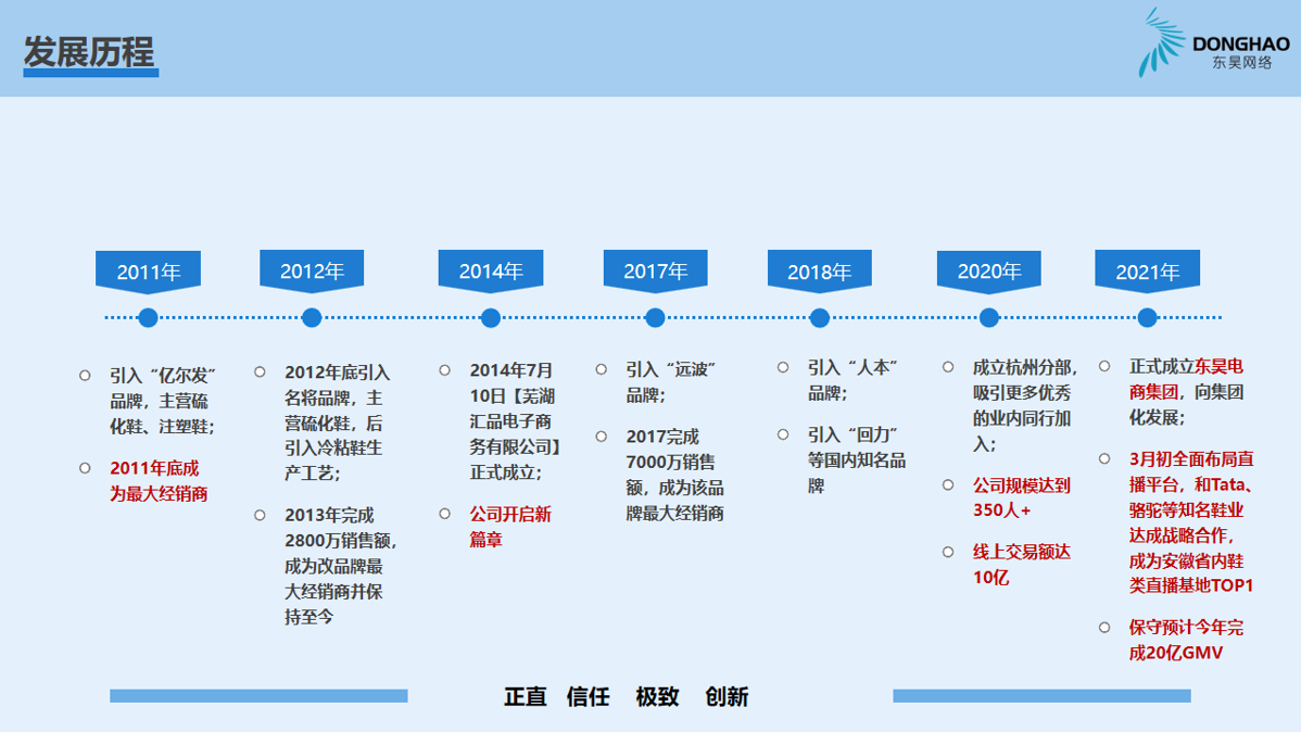 蕪湖東昊網(wǎng)絡(luò)科技有限公司,成立于 2014 年,是一家以互聯(lián)網(wǎng)平臺銷售為核心的電子商務(wù)運(yùn)營商,公司成立以來,始終專注于休閑運(yùn)動(dòng)鞋的互聯(lián)網(wǎng)銷售業(yè)務(wù),產(chǎn)品線覆蓋硫化鞋、注塑鞋、冷粘鞋,在互聯(lián)網(wǎng)二級類目單品牌排名前三,綜合成績排名TOP1;